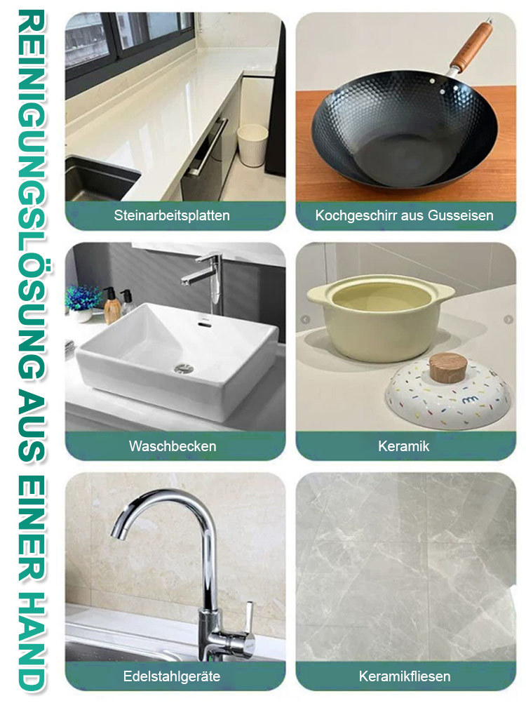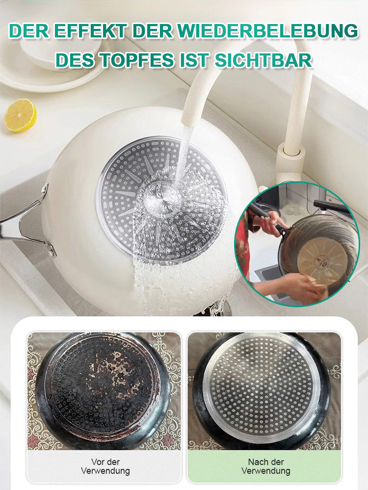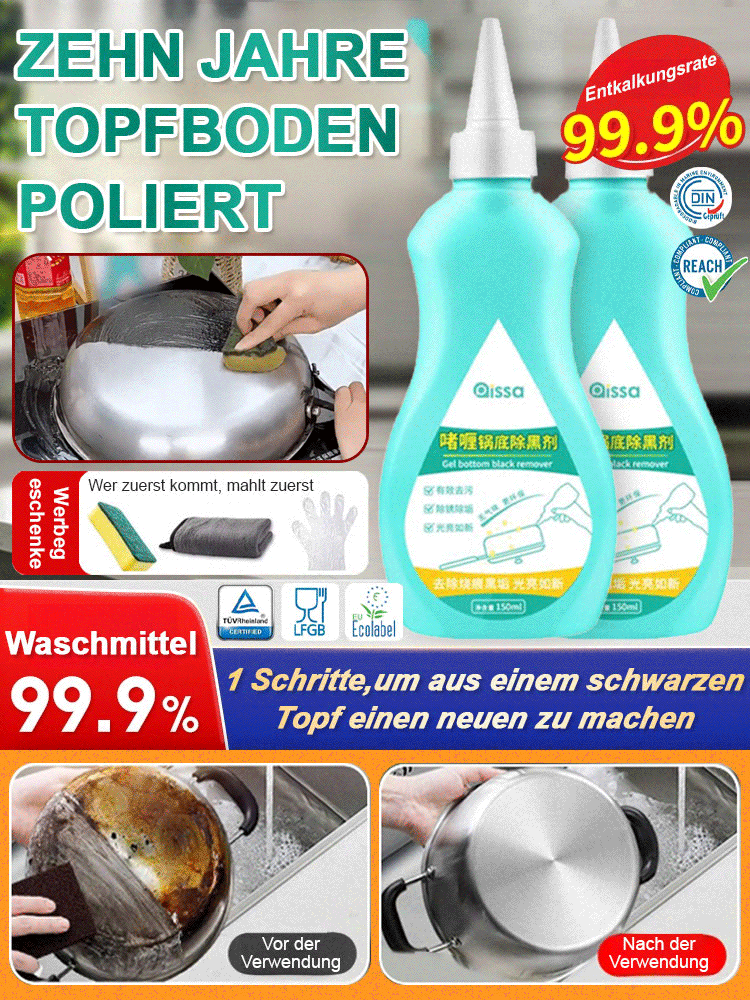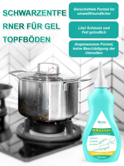 Starker Reiniger für schwarze Ablagerungen am Topfboden.